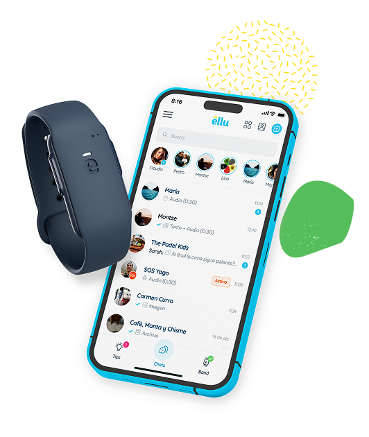 Además la App puede enlazarse con ēllu Band, una pulsera que te mantiene conectado y seguro cuando más lo necesitas.